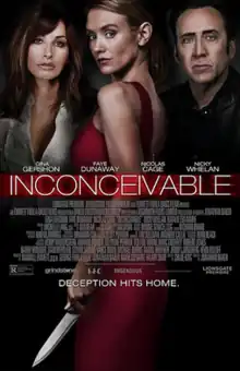 Inconceivable is a 2017 American thriller film[1] directed by Jonathan Baker and written by Chloe King. It stars Gina Gershon, Faye Dunaway, Nicolas Cage, Nicky Whelan and Natalie Eva Marie. The film was released on June 30, 2017, by Lionsgate Premiere.