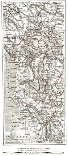 ![]() Map of the de jure boundaries of Albania according to the London Conference (1913) in white | |||||||||||||||||