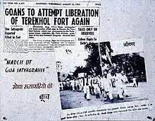 On 15 August 1954, the Portuguese resisted an attempt by 49[16] non-violent Satyagrahi activists to march into Goa and hoist the Indian flag on Tiracol Fort resulting in deaths and injuries amongst the activists.[4]