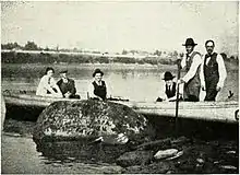 Later that month, the rock was completely submerged, "...but the water is so clear that the inscriptions carved in the same can be seen as much as two feet below the surface..." Despite the fact that it was underwater, there was "...renewed interest in the historic and mysterious rock." "Every day, and particularly on Sundays, skiffs go over in fleets, and can be seen hovering around the rock in great numbers."[13]