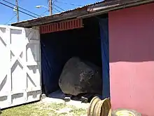 Indian Head Rock in 2007, stored in municipal garage, Portsmouth, Ohio