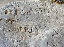 In 2009, a grandson of Henry T. Bannon, Towne Bannon, related a story that he had heard from his grandfather. During a period of low river levels in the 1890s, Portsmouth Common Pleas Judge James Bannon learned that three new sets of initials, HB, AB, and JB, had appeared on the rock, defacing earlier carvings. The judge concluded that his sons, Henry, Arthur and Jim were the culprits. He scolded them for this act of vandalism, and told them not to admit publicly to the carvings. The three sets of initials are still extant on the rock and are visible in an 1894 sketch of the rock, published in a local newspaper.[27][28]