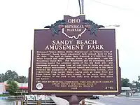 A major part of the lake's history is the amusement park and dancehall once in Russells Point, advertised as the "Midwest's Million Dollar Playground". Pappy Wilgus, a Russells Point resident, built Sandy Beach Amusement Park, which opened to the public on May 29, 1924. It was promoted as the "Atlantic City of the West". They erected a 2,000-foot (610 m) "out and back" wooden roller coaster, built by the National Amusement Device Company, known variously as "Coaster", "Thriller", "Big Dipper" and "Silver Streak" through the years. The park offered a penny arcade, a carousel, a millrace ride, a Ferris wheel, a funhouse, boat excursions, and a boardwalk to Sandy Beach Island for swimming.