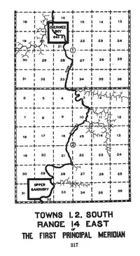 Robert Armstrong was a white man married to a Wyandot woman. The Treaty of Fort Meigs granted him 640 acres on the west side of the Sandusky river.[12] This tract is located in T2N R14E and T2N R15E of the First Principal Meridian.[13]