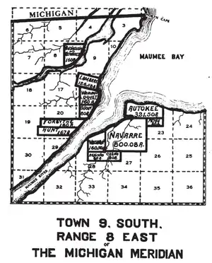 All the Maumee Bay grants were in T9S R8E of the Michigan Meridian in Lucas County.[15]