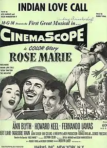 "Indian Love Call" (first published as "The Call") is a popular song from Rose-Marie, a 1924 operetta-style Broadway musical with music by Rudolf Friml and Herbert Stothart, and book and lyrics by Otto Harbach and Oscar Hammerstein II.[1] Originally written for Mary Ellis,[2] the song achieved continued popularity under other artists and has been called Friml's best-remembered work.