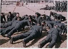 Newly commissioned officers after the passing out parade in 2006 doing celebratory pushups.