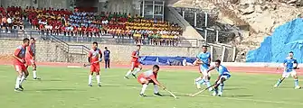Games and sports include cross country, hockey, basketball, polo, athletics, football, aquatics, volleyball and boxing. There is also an annual sports meet with other military academies in India. Adventure activities undertaken at the academy include trekking, cycling, and rock climbing.[67] In 1997 a cadet died during a boxing session.[78] In 2007 a cadet died in a grenade blast.[79] In 2009 a cadet died by drowning.[80] Between 2017 and 2019, three cadets died during training.[81] Two cadets died of exhaustion during a 10 km run,[82][83] while a third died after slipping into a gorge during a night navigation exercise.[84] The academy requires that cadets get insurance against death and disability during training.[85][86]