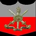 Logo of IMA. The colours are the academy colours – blood and steel. The motto, "Veerta aur Vivek" (Valour and Wisdom) is inscribed on the crest below.[2]