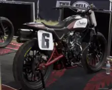 The Indian Scout FTR750 is a competition-only motorcycle engine made by Indian Motorcycle Manufacturing Company for flat track racing. It is a fuel-injected, liquid-cooled, four-valve-per-cylinder V-twin.[1] A single-pin crankshaft riding on plain bearings carries side-by-side steel connecting rods.[2] It is the first all-new flat track racing motor from Indian Motorcycle in decades.