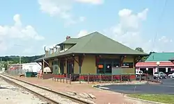 Built by the Buffalo, Rochester and Pittsburgh Railway in 1904, this historic structure is a 1+1⁄2-story, wood-frame building with weatherboard siding which was designed in a railroad vernacular-style. It features a generous overhang on all four sides.[2] It housed a restaurant named Tazé until mid-2016.[3]