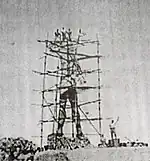 It was later painted by a local man, Carlos Basabe Cerdá. The job proved to be very difficult due to strong winds that blew the wooden planks off the scaffolding and into a nearby ditch. A construction team later tied on the planks, solving the problem. The painters first applied a primer coat, then linseed oil, varnish, and finally a coat of copper glitter.[2] The monument was inaugurated during the opening of the Comahue National Fair on September 7, 1964.[4]