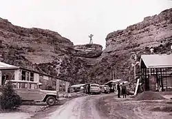 The structure is located on the northern hill of the town, which has an elevation of 70 to 80 metres (230 to 260 feet). The hill is mostly covered in bushes and can be accessed by two paths.[1] Currently it is used as an overlook for its panoramic view of the town.[3] It also serves to mark the finishing line for the annual trekking trail competition, Desafío al Indio Comahue.[5]