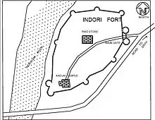 Indori fort was built by Sarsenapati Khandojirao Yesajirao Dabhade in the year 1720–21.[2] The fort also has a mint building inside the fort which is in a dilapidated state. The widow of Khanderao (Khandojirao), Sarsenapati Umabai Dabhade, was the first and only woman to become Commander-in-Chief of the Maratha forces in 1732. Their daughter Savitribai Dabhade married Srimant Yeshwantrao Mande (Sardar or equivalent of Earl), a descendent of Moropant Trimbak Pingle, the first Peshwa of the Maratha Empire, serving on Shivaji Maharaj's Ashta Pradhan (Council of Eight Ministers).