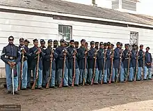 At the start of the war, the entire United States Army consisted of 16,367 men of all branches, with infantry representing the vast majority of this total.[2] Some of these infantrymen had seen considerable combat experience in the Mexican–American War, as well as in the West in various encounters, including the Utah War and several campaigns against Indians. However, the majority spent their time on garrison or fatigue duty. In general, the majority of the infantry officers were graduates of military schools such as the United States Military Academy.