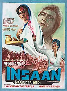Insaan (transl. Human) is a 1982 Indian Hindi-language action drama film directed by Narendra Bedi. The film stars Jeetendra, Vinod Khanna and Reena Roy in the lead roles, with Amjad Khan featuring as the main antagonist. The film was launched in 1976 but faced several delays due to Khanna going to the US, and many other issues.