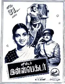 Inspector is a 1953 Indian Tamil language film directed by R. S. Mani. It is an adaptation of the play of the same name. The film stars T. K. Shanmugam, S. Balachander, Anjali Devi and P. K. Saraswathi.[2]