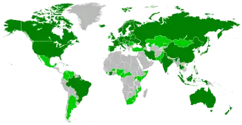 The map of IFF members. Dark-green are ordinary members, light-green are provisional members