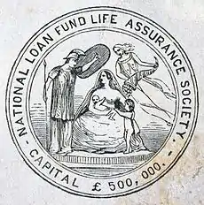 - ↑ Relevant dates in the company's early history are given in the transcript of its initial shareholders meeting, published at "National Loan Fund Life Assurance Society". The Athenæum. No. 656. May 23, 1840. pp. 422–423. An abridged version of the transcript appears at "National Loan Fund Life Assurance Society". The Spectator. No. 620. May 16, 1840. p. 478. The legislative history of the Act to enable the National Loan Fund Life Assurance Society ... appears in Volume 93 of the Journals of the House of Commons. It was enacted on July 25, 1838, as Local Act c. 92 of 1838 (1&2 Vict) and received royal assent on July 27. See page 752 of the Journals for the enactment and page 758 for the royal assent.