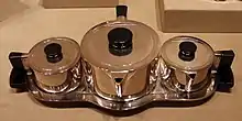 International Silver Company designs have been exhibited in numerous museum exhibitions in the United States and abroad. For example, ISC was represented at several Metropolitan Museum of Art exhibitions during the later 1920s and 1930s including "The architect and the industrial arts: An exhibition of contemporary American design" (1929).[8] ISC is particularly known in the museum world for its high-quality Modernist designs from 1928 into the 1960s, which were exhibited at the Dallas Museum of Art, the Smithsonian Institution in Washington, DC, and the Wolfsonian in Miami Beach, Florida in 2005–07.[9][7] This exhibition highlighted many ISC design achievements, including its installation called the "Moon Room" exhibited in the Pavilion of American Interiors at the 1964 New York World's Fair from 1964 to 1965.