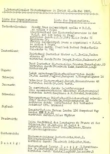 The International League of Tenants was founded in May 1926 in Zürich, Switzerland as the International League of Tenants at the first international tenant congress in Zürich, Switzerland, on the initiative of tenants' unions in Sweden, Germany, Austria and Switzerland.[8] The founding congress also included unions from Czechoslovakia, Danzig, Hungary, Denmark, the UK, and France.[9]