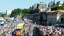 Internationales Dixieland Festival Dresden is a jazz festival in Germany. It first took place in 1971. As Germany's oldest and Europe's biggest old-time jazz festival it is a firm fixture in the European scene. For eight days and seven nights, the capital of Saxony becomes Swingin' Dresden and draws up to around half a million jazz fans to the city, depending on the weather. One of the annual highlights is the riverboat shuffle on the Elbe, when the world's oldest and largest fleet of paddle-steamers becomes a floating stage and festival-goers are invited to step aboard. The climax is the Dixieland parade through the city centre, which culminates in a farewell jazz session.