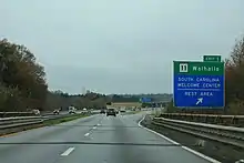 Northbound exit includes South Carolina Welcome Center; southern terminus of SC 11