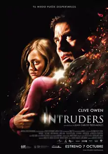 Intruders is a 2011 supernatural horror film directed by Juan Carlos Fresnadillo and written by the Spanish duo Nicolás Casariego and Jaime Marques.[5] The film stars Clive Owen, Carice van Houten, Daniel Brühl, Pilar López de Ayala, Ella Purnell, Izan Corchero, Kerry Fox and Héctor Alterio. The film follows a man and a woman trying to save their kids' life from an imaginary monster, known as Hollow Face, that is trying to take their face and soul.