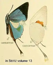 Iolaus caesareus is a butterfly in the family Lycaenidae. It is found in Cameroon, the Republic of the Congo and the Democratic Republic of the Congo.[2]