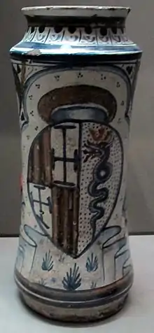 Neapolitan albarello with probable childhood portrait of Ferrandino, eldest son of Ippolita.