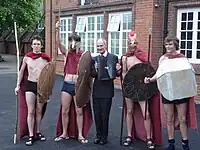 Ipswich School Headmaster, Ian Galbraith, playing his part in the leaving pranks, 2007.
