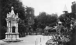 A view of Ipswich School from Christchurch Park, as seen in an old postcard