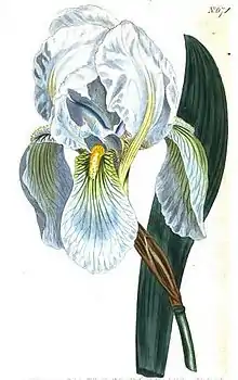 In 1910, William Rickatson Dykes in The Gardeners' Chronicle of September 17, 1910,[23] felt that Iris florentina was not a wild species but had hybrid origin,[15] or form of Iris germanica.[19]: 121