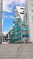 The buildings are up to ten floors tall but vary in height, with the shortest building closest to the waterfront and the tallest further back. The complex is designed and modeled after floating icebergs in the north Atlantic, both in shape and color. The buildings are divided and crisscrossed into smaller units with steep crooked roofs, to ensure that all inhabitants have ideal views of the sea. Visually, the buildings display sharp triangular edges and shifting, irregular facades. The buildings are clad in white terrazzo and have balconies made of blue glass.[2]