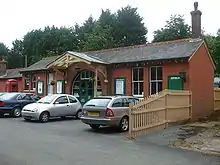 The wooden down waiting platform had been sold to the Bluebell Railway in 1978 and so Dave Milham had to commission a replica from local craftsman. Graffiti was sandblasted from the walls. Hanging baskets, milk churns and original gas lamps were brought in to adorn the platforms. Track materials came from a British Rail surplus at Croydon and three sidings were subsequently laid out with a small headshunt together with a special connection to facilitate the easy unloading of stock delivered by road. The Milhams converted the stationmaster's house into a family residence and made it into their home, converting the first class passengers' waiting room into a lounge area.[5]
