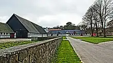 As of 2011 Isgård includes 263 hectares of land. There are modern pig farm buildings with a registered production capacity of 12.000 piglets weighing 7 to 30 kilos per year.[2] These buildings are located out of sight of the main buildings, but are visible from the southern sea front in Begtrup Vig. The oldest of Isgård's buildings are about 300 years old dating back to the 1700s.[3]