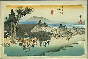 ![]() Hiroshige's print of Ishibe-juku, part of the Hōeidō edition The Fifty-three Stations of the Tōkaidō series | |