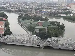 ![]() The island in the middle of the Pasig River with the Ayala Bridge in its foreground, looking due east | |