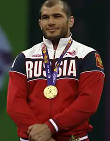 Islam Kurbanovich Magomedov (Russian: Ислам Курбанович Магомедов, Avar: Ислам МухӀаммад Къурбаназул вас); born 8 February 1991 in Makhachkala) is a Russian Greco-Roman wrestler of Dargin descent. He is a two-time Junior Greco-Roman World Champion[1][2] and gold medalist at the 2015 Russian National Greco-Roman Wrestling Championships.[3] On 12 June 2015 he won gold medal at the European Games 2015, defeating Ukrainian Dimitriy Timchenko in the final.[4] In the same year Magomedov won bronze medal at the 2015 World Wrestling Championships. Magomedov is International Master of Sports in Greco-Roman Wrestling. He competed at Olympics 2016, but lost in the quarterfinals.