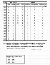 - ↑ See the Tithe Applotment Books (1823-37), Griffith's Land Valuation (1847-64) and the Census of Ireland records for 1901 and 1911.