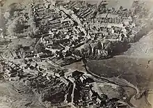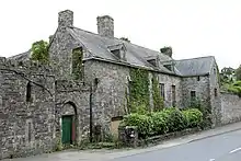 Island House is a Grade II* listed, partly Tudor, sub-medieval townhouse located in Laugharne, Carmarthenshire, in southwest Wales. It sits below the castle between the two mouths by which the River Corran enters the Tâf estuary, known locally as "Earth Lake" and "Mill Orange".[3] The frontage now ranges along Wogan Street but was formerly set in a walled garden. Built principally of stone, the earliest parts date from the 15th century, with additions from the 16th and 19th centuries. The grading status signifies a building of exceptional interest and it is the oldest residence in the township.[4] The historic importance of whole site is shown by separate listings of its garden, walls and outbuildings.[5]