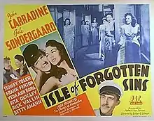 Isle of Forgotten Sins is an American South Seas adventure film released on August 15, 1943 by PRC, with Leon Fromkess in charge of production, directed by Edgar G. Ulmer (also credited with original story) and featuring top-billed John Carradine and Gale Sondergaard whose performance in one of 1936's Academy Award for Best Picture nominees, Anthony Adverse, earned her the first Academy Award for Best Supporting Actress.