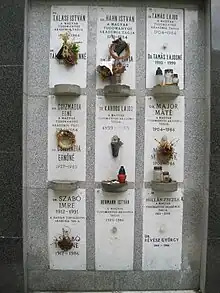 Urn house in Farkasréti Cemetery with the name of Hahn (first row, in the middle)