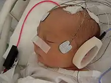 Sleeping newborn infant participating in the experiment, the mother of the baby was present during the procedure