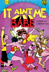 It Ain't Me Babe Comix[1] is a one-shot underground comic book published in 1970. It is the first comic book produced entirely by women. It was co-produced by Trina Robbins and Barbara "Willy" Mendes, and published by Last Gasp.[2] Robbins and other staff members from a feminist newspaper in Berkeley, California, also called It Ain't Me, Babe, contributed.[3][4] Many of the creators from the It Ain't Me Babe comic went on to contribute to the long-running series Wimmen's Comix.[5]