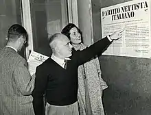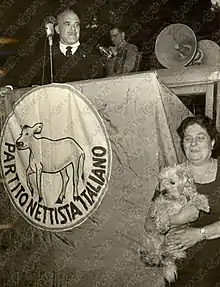 - ↑ Simona Amadori (2018-12-31). ""Bistecche per tutti!" - La curiosa storia del Partito Nettista Italiano" ["Steaks for everybody!" - The curious story of the Italian Nettist Party]. Riscrivere la storia.