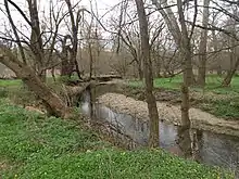 Ithan Valley Park is a 19-acre park that is adjacent to the creek. It contains a hiking trail and has fishing opportunities.[17] The construction of a “Willowstreams corridor” trail is actively underway next to the creek that will connect Haverford Reserve to Ithan Valley Park when completed.[18] Radnor Valley Country Club is a golf course that borders the creek. Formerly crossing the creek, it was redesigned in 1968 to run north-south along the creek due to construction of Interstate 476.[19]