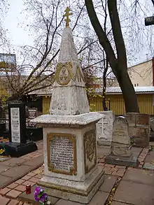 The tombstone of Prince Ivan is located at Vsesvyatskoye Church (Храм Всех Святых во Всехсвятском) in Moscow. The monument was placed on his grave personally by his son General and Prince Pyotr Bagration. The monument is a fluted pyramid on a high pedestal. The Tombstone of Prince Ivan has changed position repeatedly. Now it is set in the north of the temple near the memorial of "Reconciliation of Peoples." Tombstone of Ivan Bagration refers to the history of the monuments and is of federal significance.