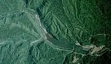 Satellite photo of the Izarigawa Dam and its surrounding areas
