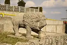 The stone lions of Jósika Castle in the Jibou Botanical Garden